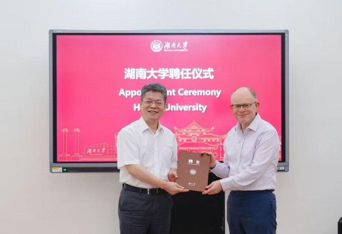 访问期间,我校举行Richard Penty客座教授聘任仪式,邓卫为Richard Penty颁发了聘书。湖南省科学技术厅党组书记李志坚出席,姜潮主持受聘仪式。