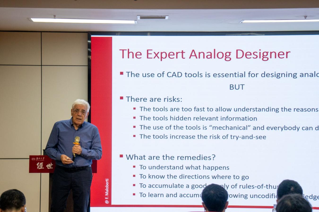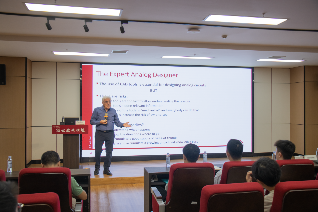 6月16日上午,意大利帕维亚大学荣誉教授、IEEE终身会士Franco Maloberti做客经世致用讲坛,在半导体学院C105报告厅作“运算放大器和跨导放大器”报告。