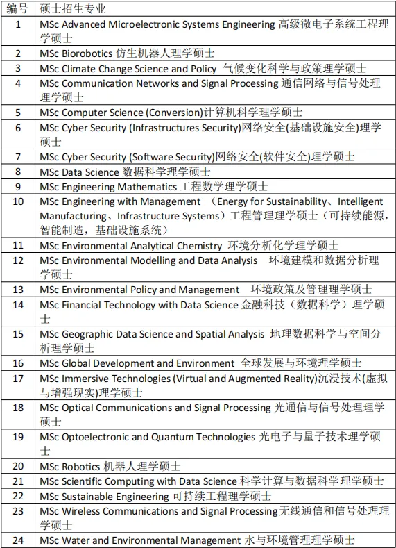 附件2:英国布里斯托大学3+1本硕双学位项目列表