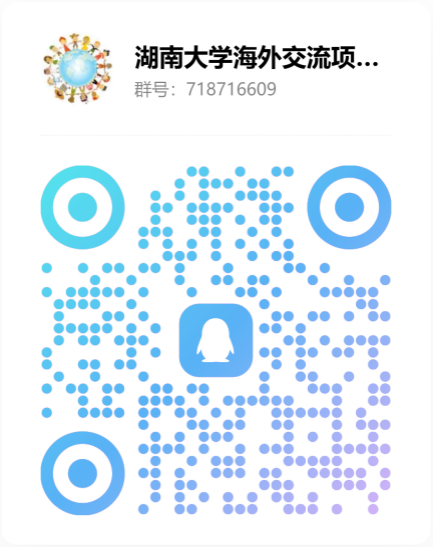 办公地址:湖南大学国际合作与交流处,南校区第二办公楼224(周一至周五,上午8:00–11:30;下午2:30–5:30)。